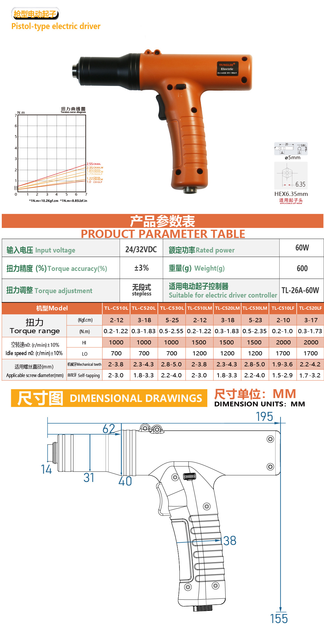 枪型电动定扭螺丝刀说明书-TL-C510L、C510LM、C510LF、C520L、C520LM、C520LF、C530L、C530LM下载