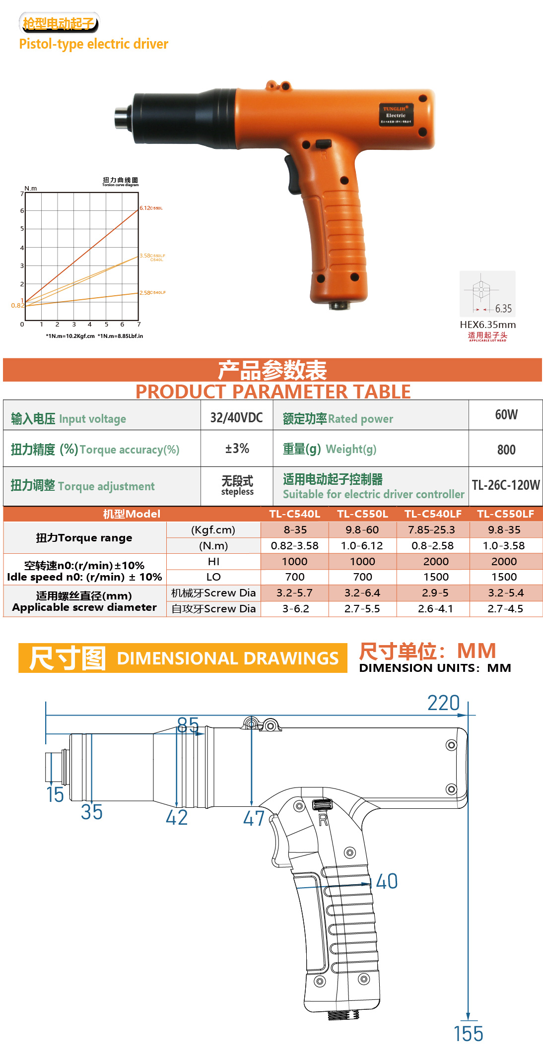枪型电动定扭螺丝刀说明书-TL-C540L、C550L、C540LF、C550LF下载