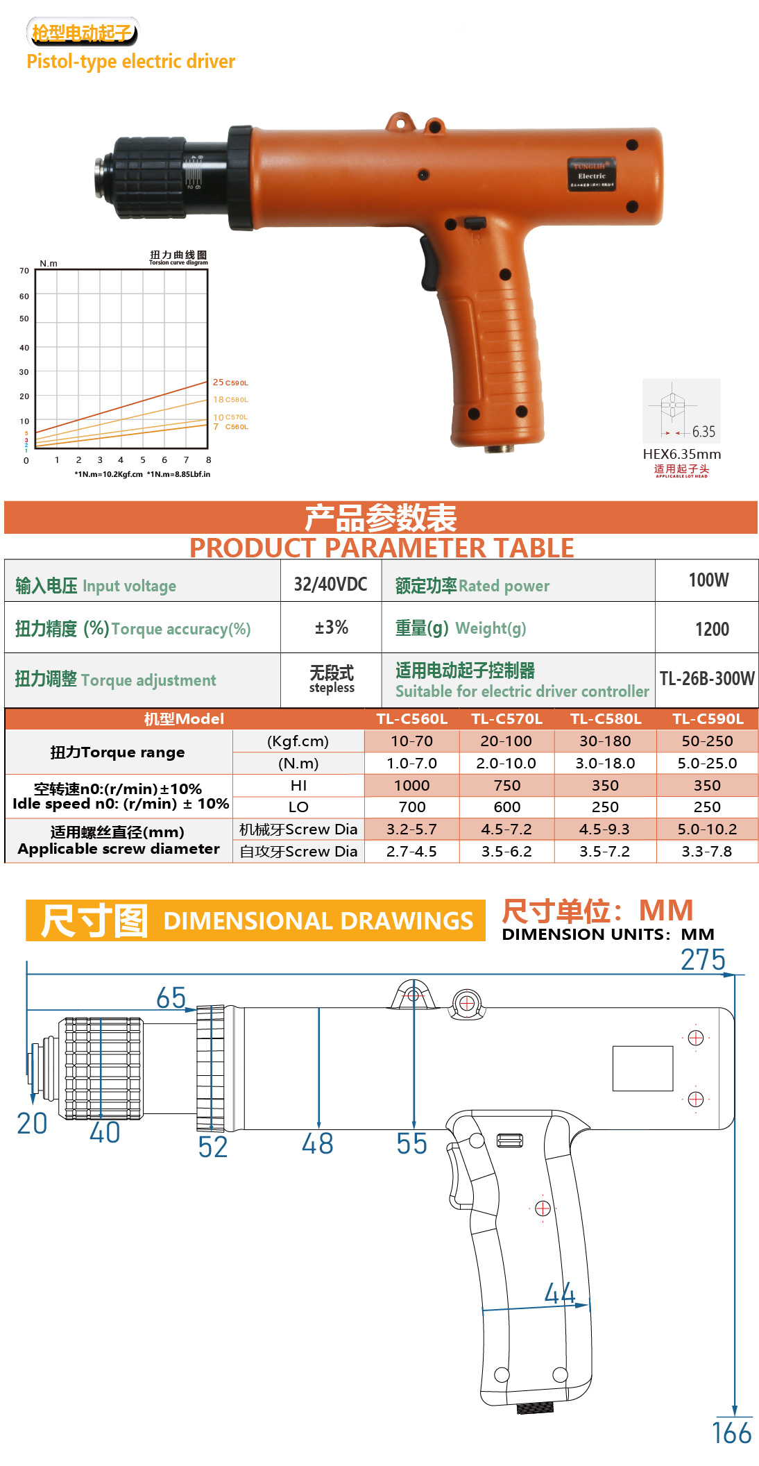 枪型电动定扭螺丝刀说明书-TL-C560L、C570L、C580L、C590L下载