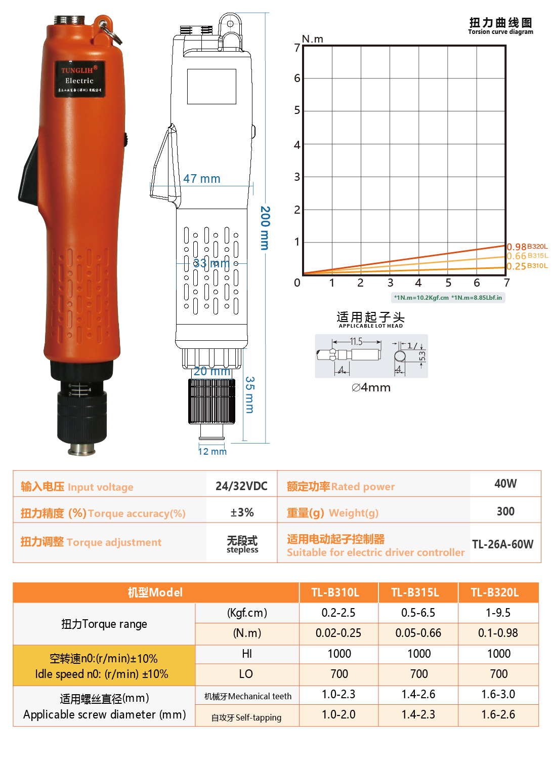 微小扭力-电批说明书-TL-B310L,B315L,B320L下载